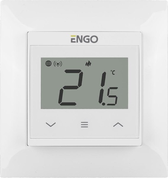 ENGO Controls E55-W - Regulator temperatury do ramki 55x55, 230V, biały, Internetowy, Wi-Fi