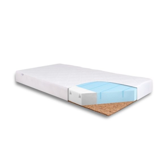 Mata w 100% z naturalnych włókien orzecha kokosu połączonych bez użycia syntetycznego kleju; naturalnym kauczukiem jako dolna podstawa materacyka.