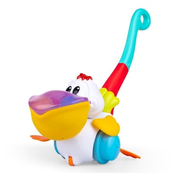 Piłeczkowy Pelikan poleca się na nieodłącznego towarzysza dziecięcych spacerów! Zabawny ptaszek kryje w dziobie kolorowe piłeczki, a podczas prowadzenia go rączką, wyrzuca je na zewnątrz. Zadaniem malucha jest pozbierać je wszystkie, wrzucić z powrotem do ptasiego dzioba i rozpocząć zabawę od nowa! Wszystko w takt skocznej piosenki w języku polskim oraz wesołych, dźwięków.