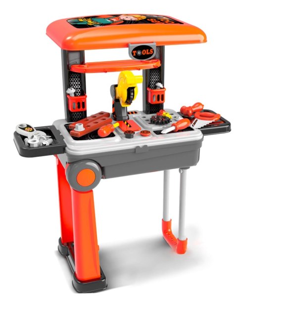 Jeśli w pokoju malucha nie ma zbyt dużo miejsca na kolejne zabawki, można zdecydować się na zakup naszych narzędzi w walizce, która po odpowiednim złożeniu staje się stołem. Mały majsterkowicz ma do wyboru całą listę przydatnych narzędzi.