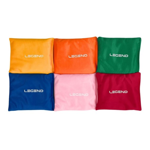 Woreczki gimnastyczne Legend - 6 kolorów, trwałe i lekkie. Idealne do ćwiczeń koordynacji, rehabilitacji i zabawy. Waga: ok. 90 g.