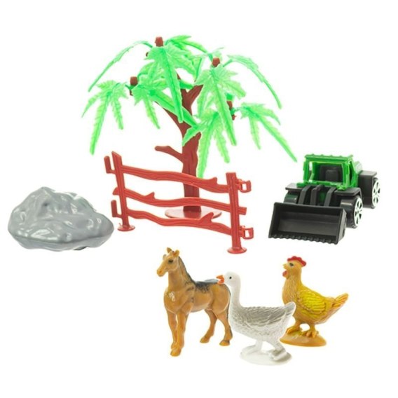 Zestaw mini farma to bardzo kreatywna zabawka dla dziecka. Naturalne odwzorowanie zwierzątek wzbudzi ciekawość twojego malucha. Do zestawu dołączony jest pojazd oraz inne elementy jakie możemy spotkać na farmie. Do wyboru jest 1 z 2 zestawów.