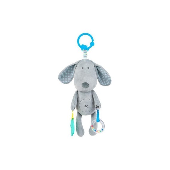 Piesek zadba o to, żeby żaden bobas się przy nim nie nudził. Ta urocza zawieszka wyposażona została w gryzaczek, który przyniesie ulgę obolałym dziąsłom ząbkującego bobasa. Zabawkę zdobi także grzechocząca obręcz z kolorowymi kuleczkami. Praktyczny uchwyt do mocowania zabawki, pozwoli przymocować ją w dowolnym miejscu, aby wszędzie mogła towarzyszyć maluchowi.