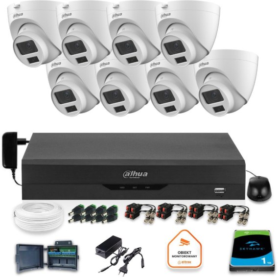 Zestaw monitoringu Dahua 8x kamera kopułkowa HAC-HDW1500CLQ-IL-A-0280B-S2 1TB IR 20m 51mp
