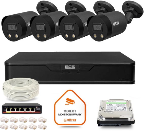Zestaw monitoringu IP BCS Point 4x Kamera BCS-P-TIP28FWR3L2-Ai2-G Rejestrator z dyskiem 2TB
